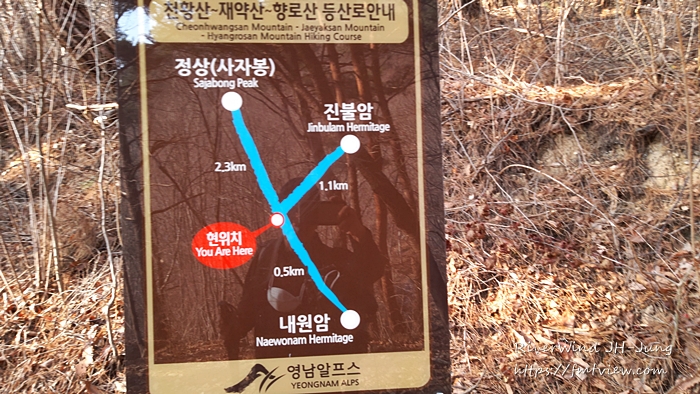 내원암을 지나고 본격적인 숲길에 들어서면 이런 간단한 이정표가 하나 있습니다.