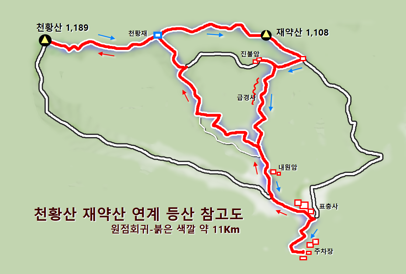아래는 본인이 다녀온 등산 코스를 참고도로 그려서 올립니다.